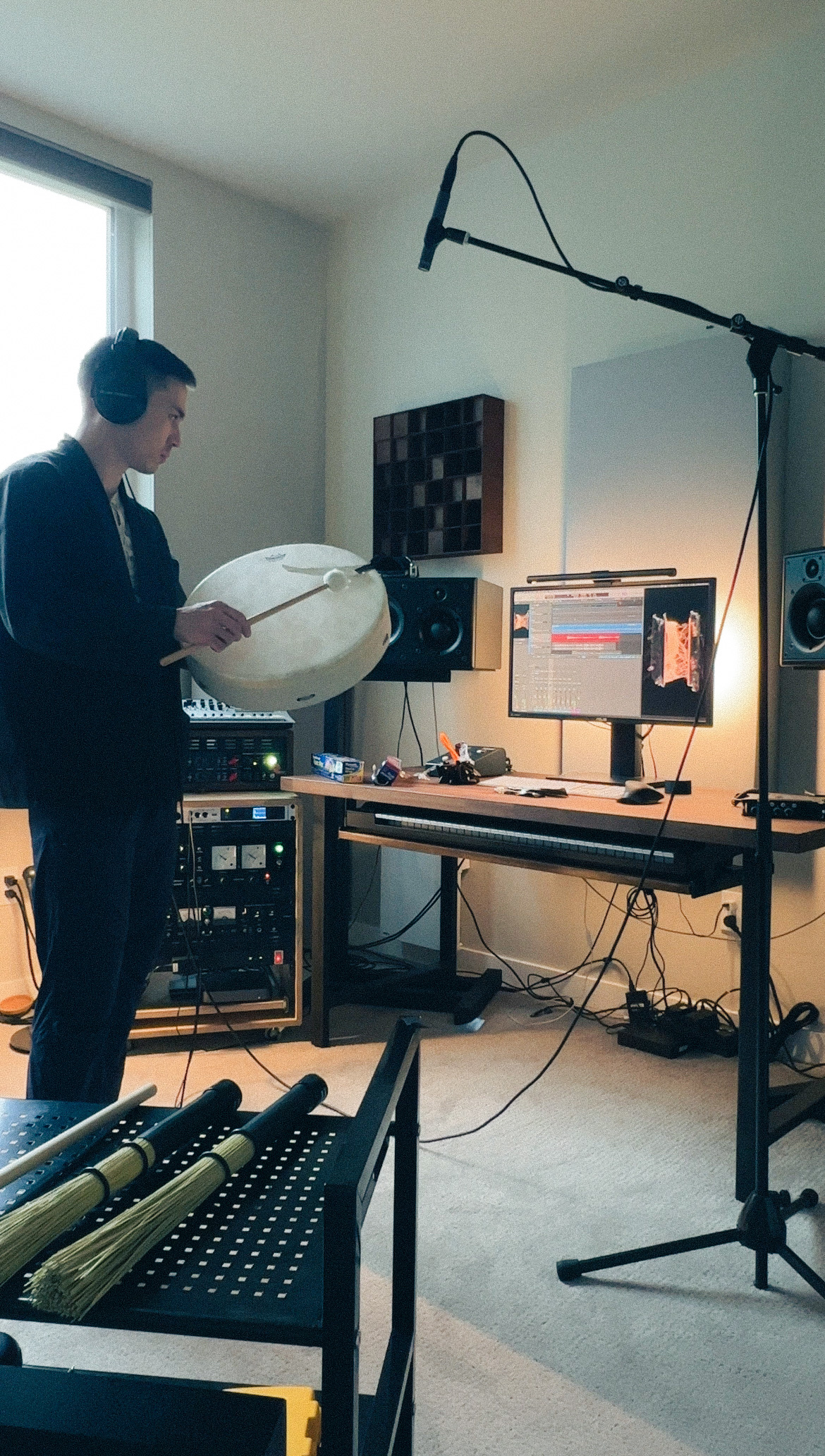 I've always been deeply inspired by Japanese aesthetics, and this piece was an attempt to exercise the principles of wabi sabi. Implicit forms floating in emptiness, with only brief slivers of light to signal their movement. The copper ribbons were intentionally lit in such a way to conceal their material existence, and in doing so, highlight their essence through sound and intrigue.